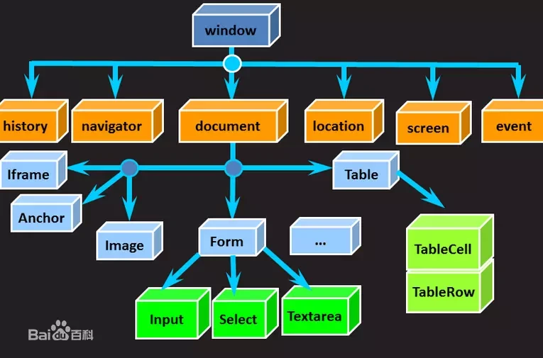 在html中有很多DOM对象如:Document、Element 、Attribute、Event、Anchor、Body、Button 等这些都是HTML中的DOM对象,HTML中一个标签对应一个DOM标签对象如: Anchor对应<a>标签、Body对应<body>标签等,这里主要关注Document、Element 、Attribute、Event这几个DOM对象。